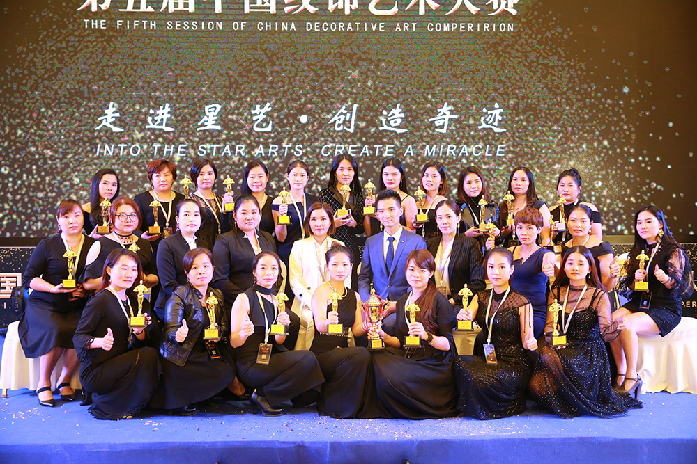 接下来进入颁奖环节,大家穿着漂亮的晚礼服在台下就坐,整个会场显得星光熠熠。由评委依次为我们优秀的纹绣师颁发奖杯和证书,并跟评委合影留念,过程中还穿插着砸蛋环节,不时就会听到惊呼声,砸中一个大奖,全场分外激动。
